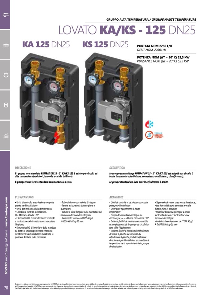 Il gruppo non miscelato KOMPAT DN 25 - 1” KA/KS-125 è adatto per circuiti ad