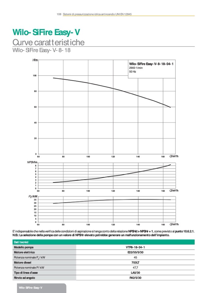 N:B.: La selezione della pompa con un valore di NPSHr elevato potrebbe generare un malfunzionamento dell’impianto.