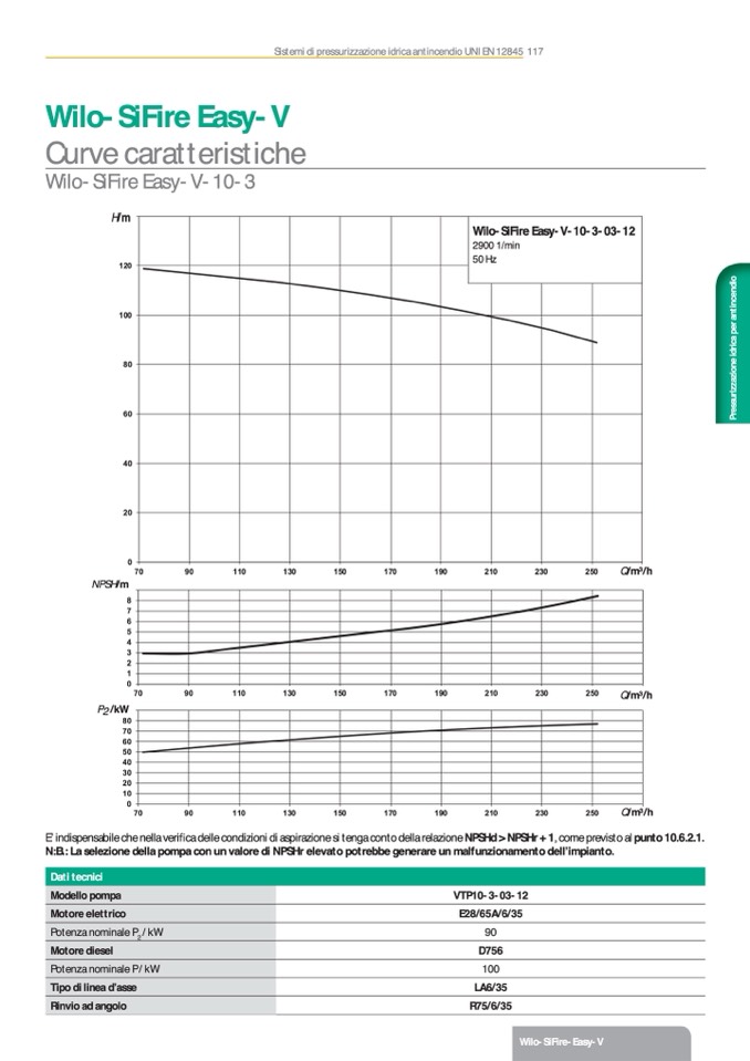 N:B.: La selezione della pompa con un valore di NPSHr elevato potrebbe generare un malfunzionamento dell’impianto.
