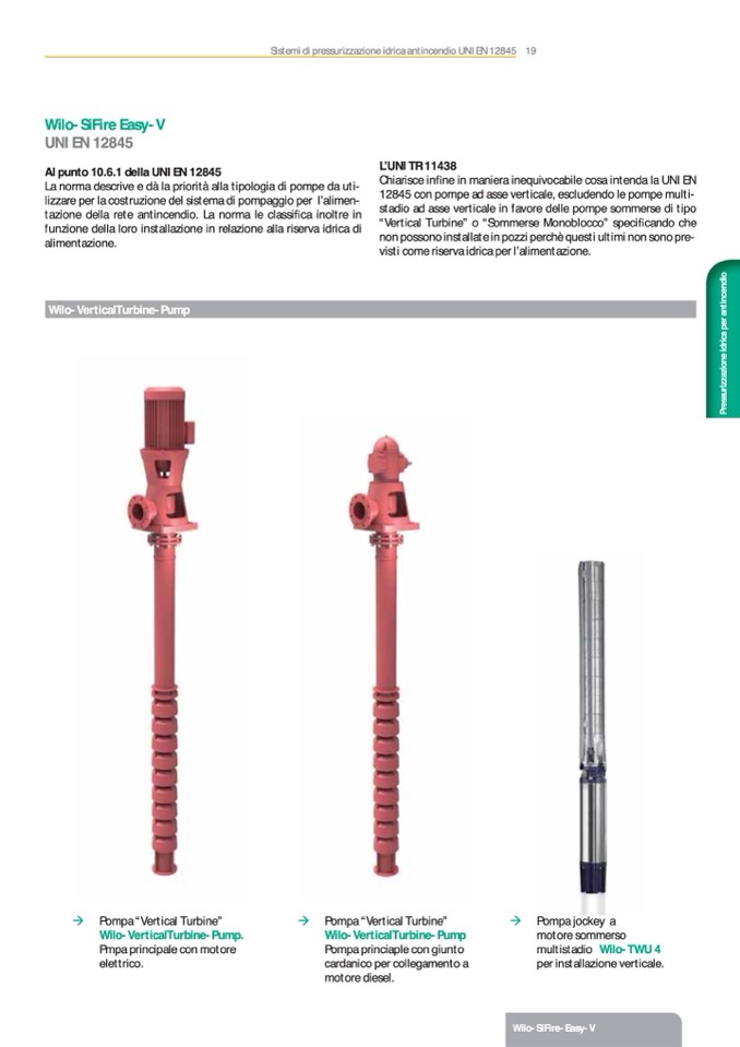 “Vertical Turbine” o “Sommerse Monoblocco” specicando che