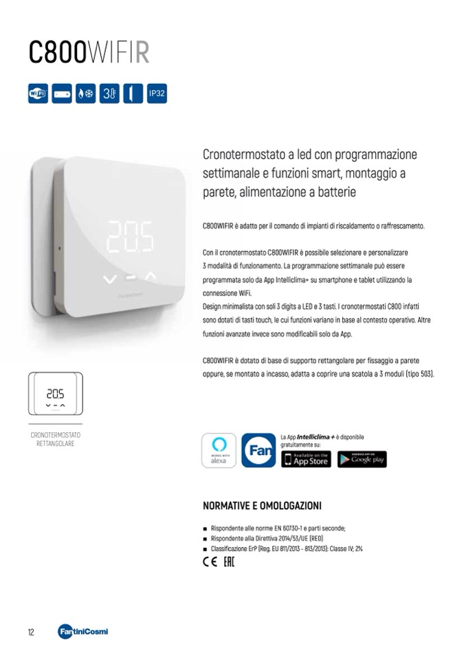 C800WIFIR è adatto per il comando di impianti di riscaldamento o raffrescamento.
