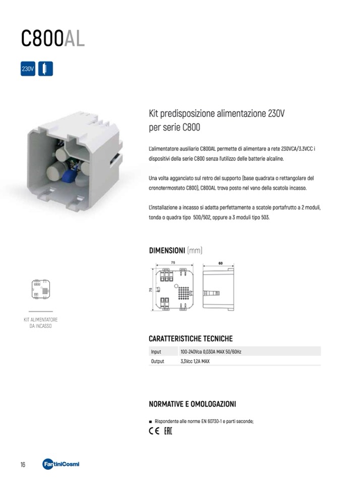 cronotermostato C800), C800AL trova posto nel vano della scatola incasso.