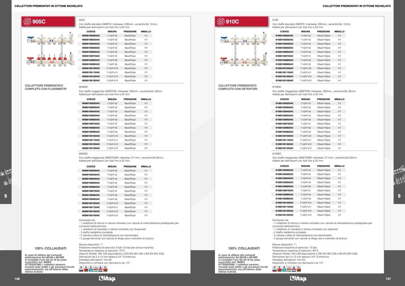 - 1 collettore di mandata in ottone nichelato con detentori