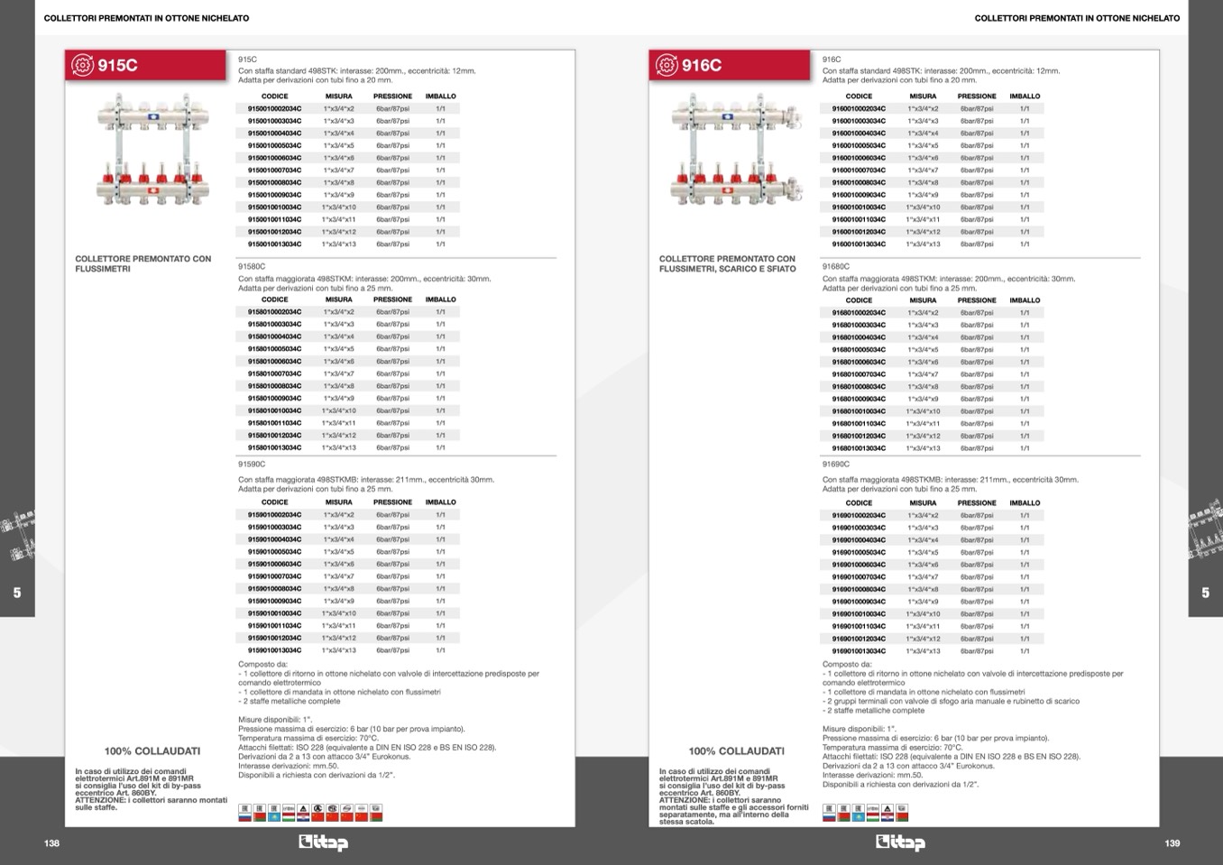 Pressione massima di esercizio: 6 bar (10 bar per prova impianto).