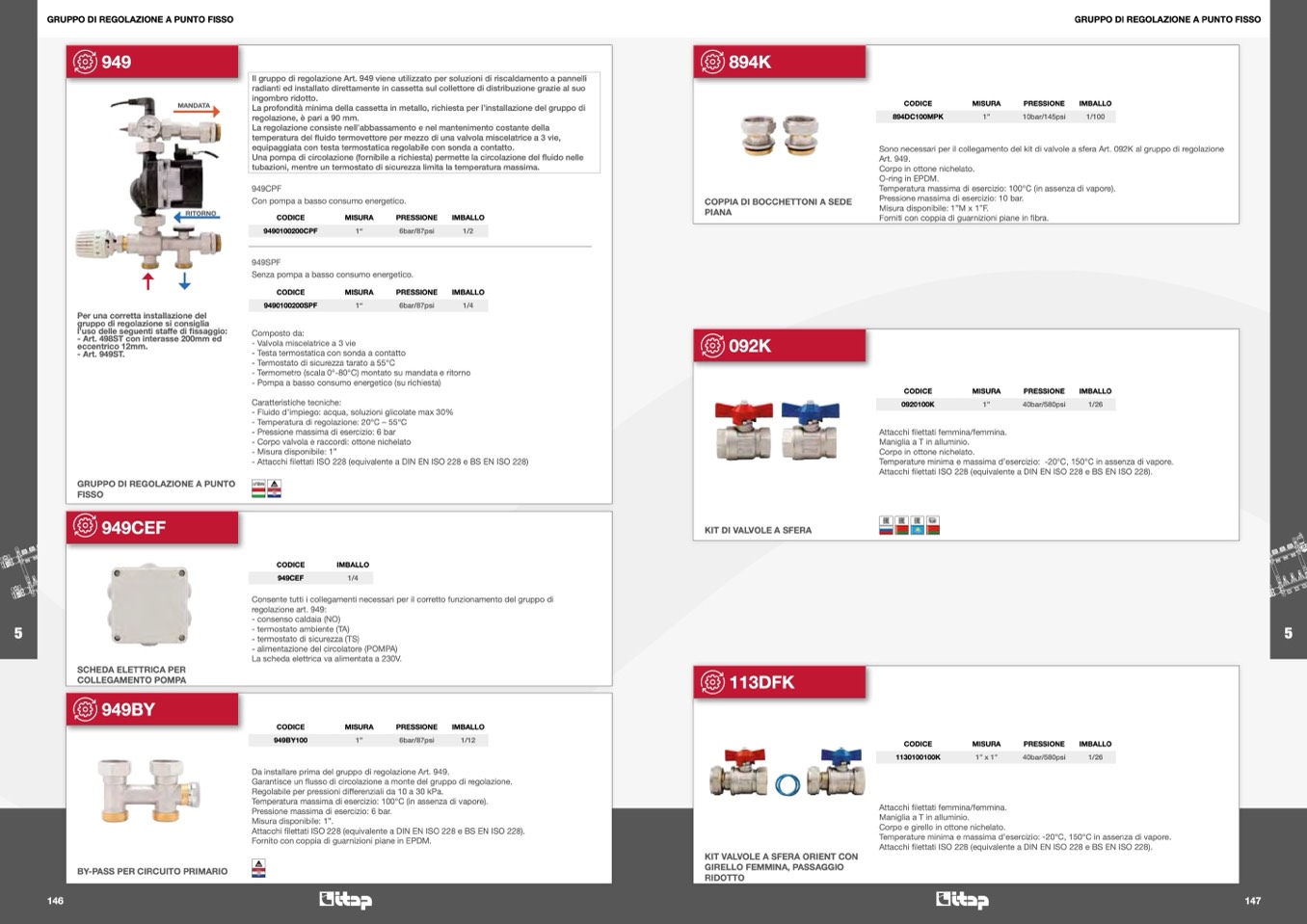 Sono necessari per il collegamento del kit di valvole a sfera Art. 092K al gruppo di regolazione