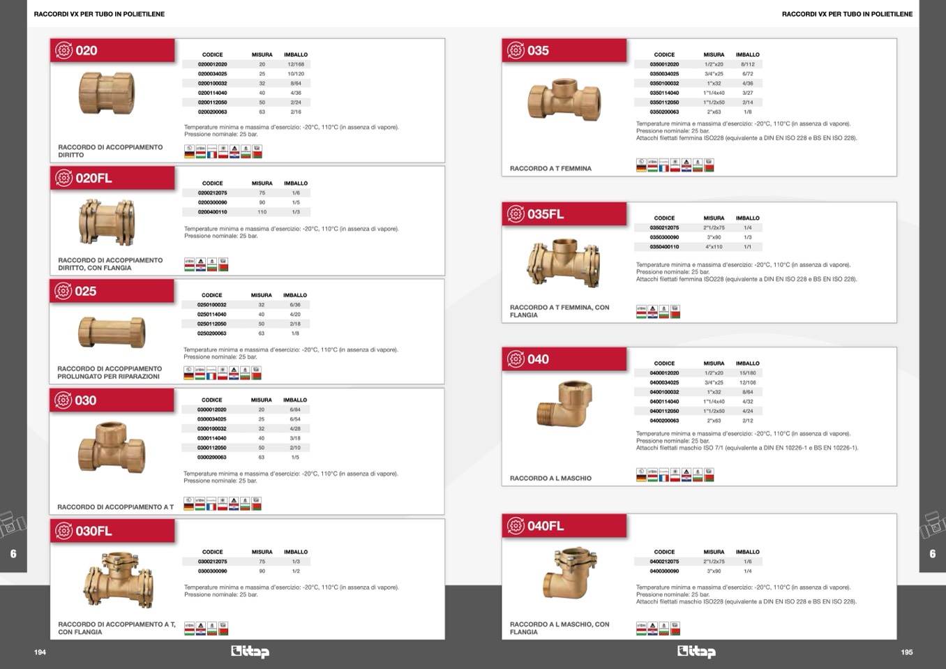 Temperature minima e massima d’esercizio: -20°C, 110°C (in assenza di vapore).