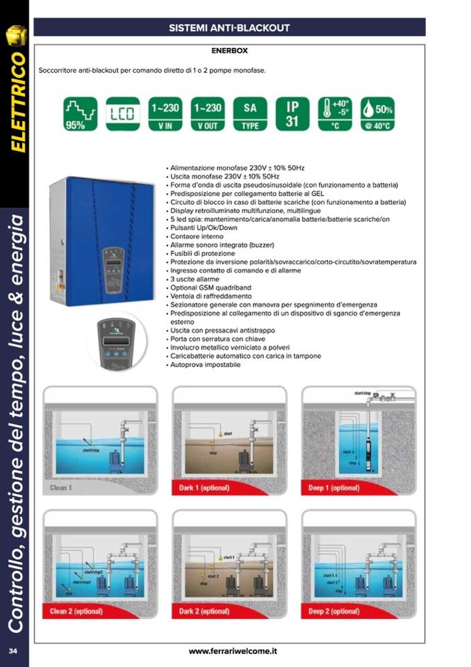Soccorritore anti-blackout per comando diretto di 1 o 2 pompe monofase.