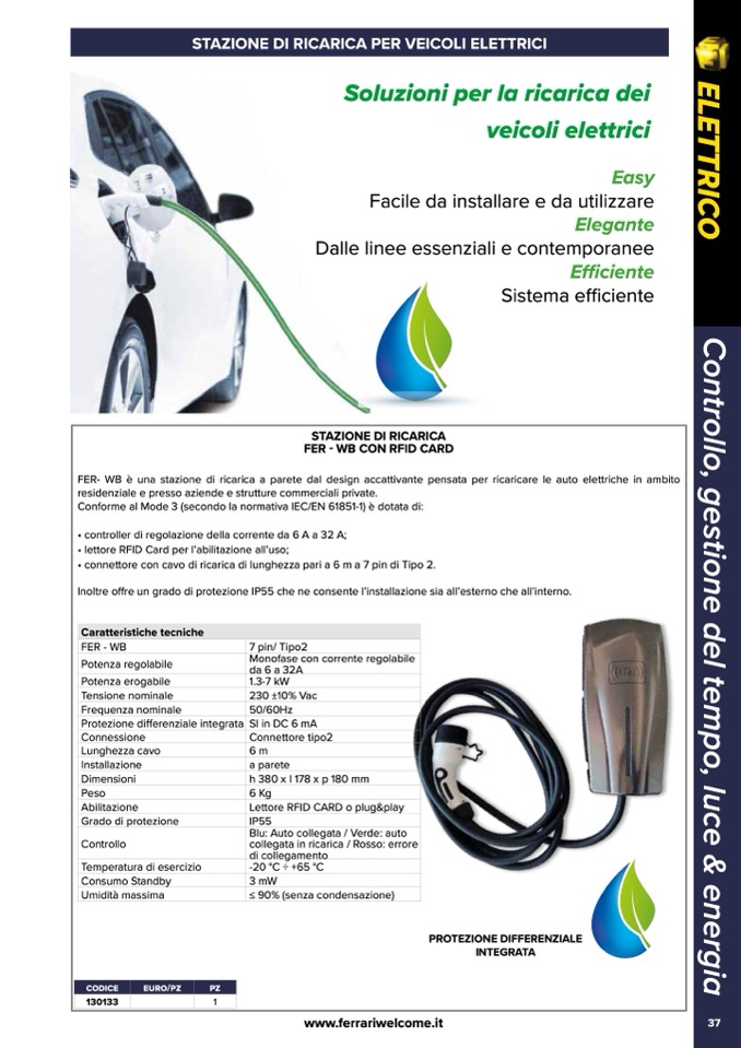 FER- WB è una stazione di ricarica a parete dal design accattivante pensata per ricaricare le auto elettriche in ambito