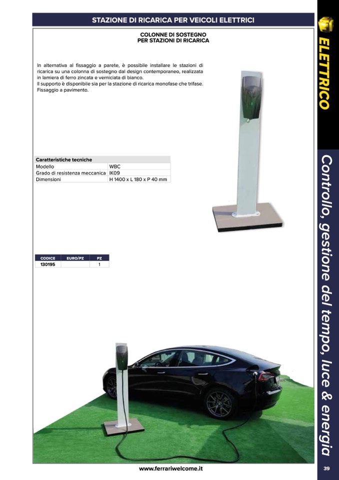 Il supporto è disponibile sia per la stazione di ricarica monofase che trifase.