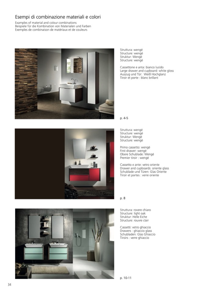 Examples of material and colour combinations
