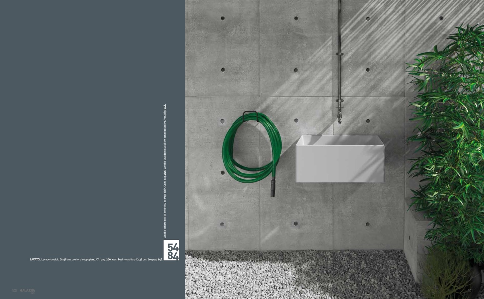 LAVATOI. Lavabo-lavatoio 60x38 cm, con foro troppopieno. Cfr. pag. 246. Washbasin-washtub 60x38 cm. See pag. 246.