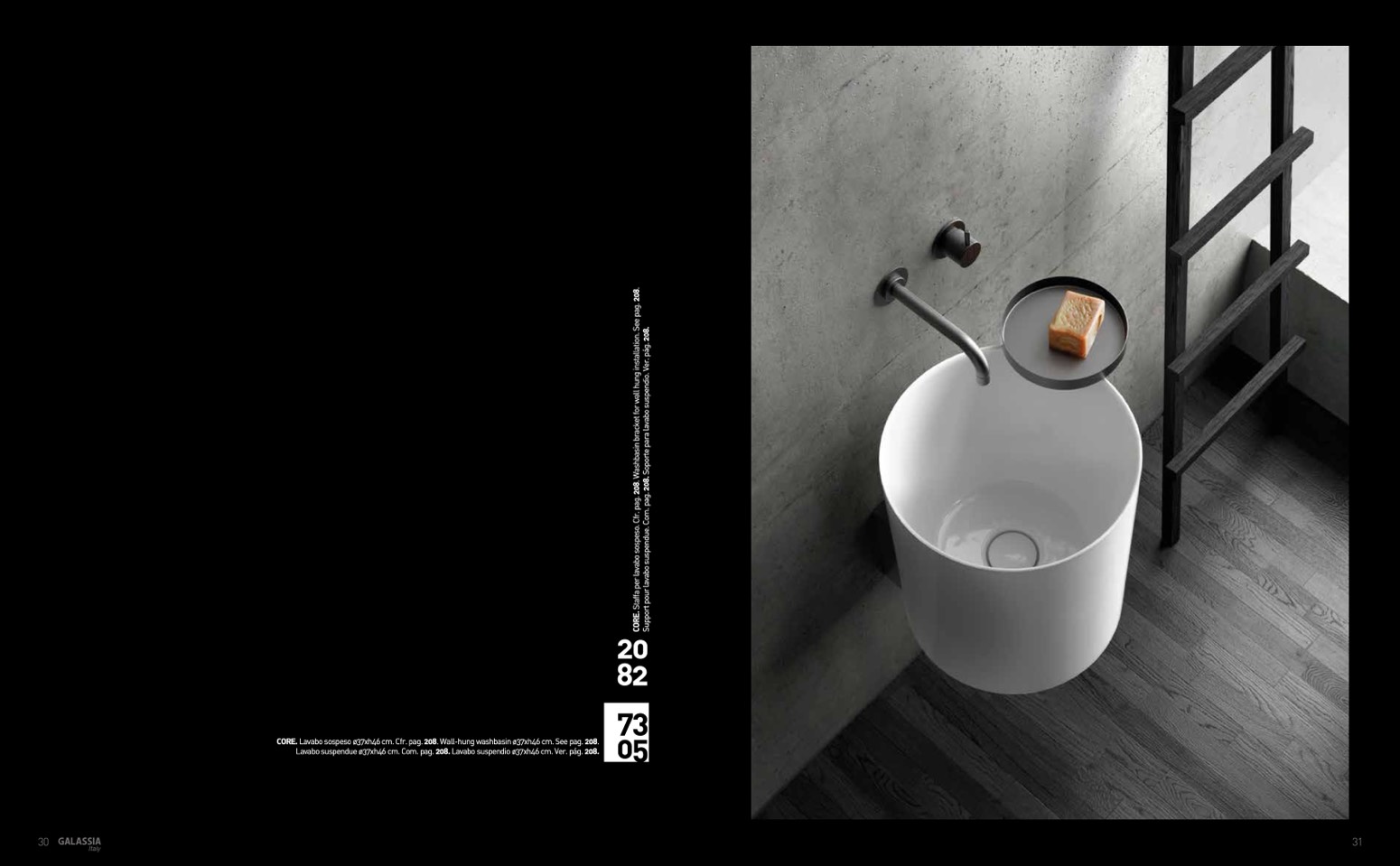 CORE. Lavabo sospeso ø37xh46 cm. Cfr. pag. 208. Wall-hung washbasin ø37xh46 cm. See pag. 208.
