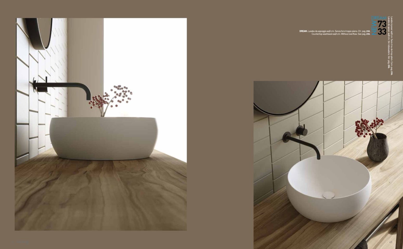 Countertop washbasin ø48 cm. Without overflow. See pag. 210.