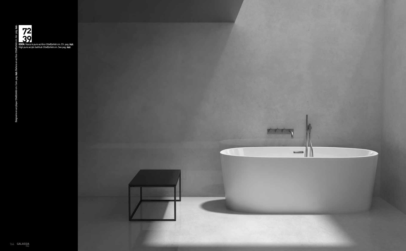 High pure acrylic bathtub 170x82xh60 cm. See pag. 242.