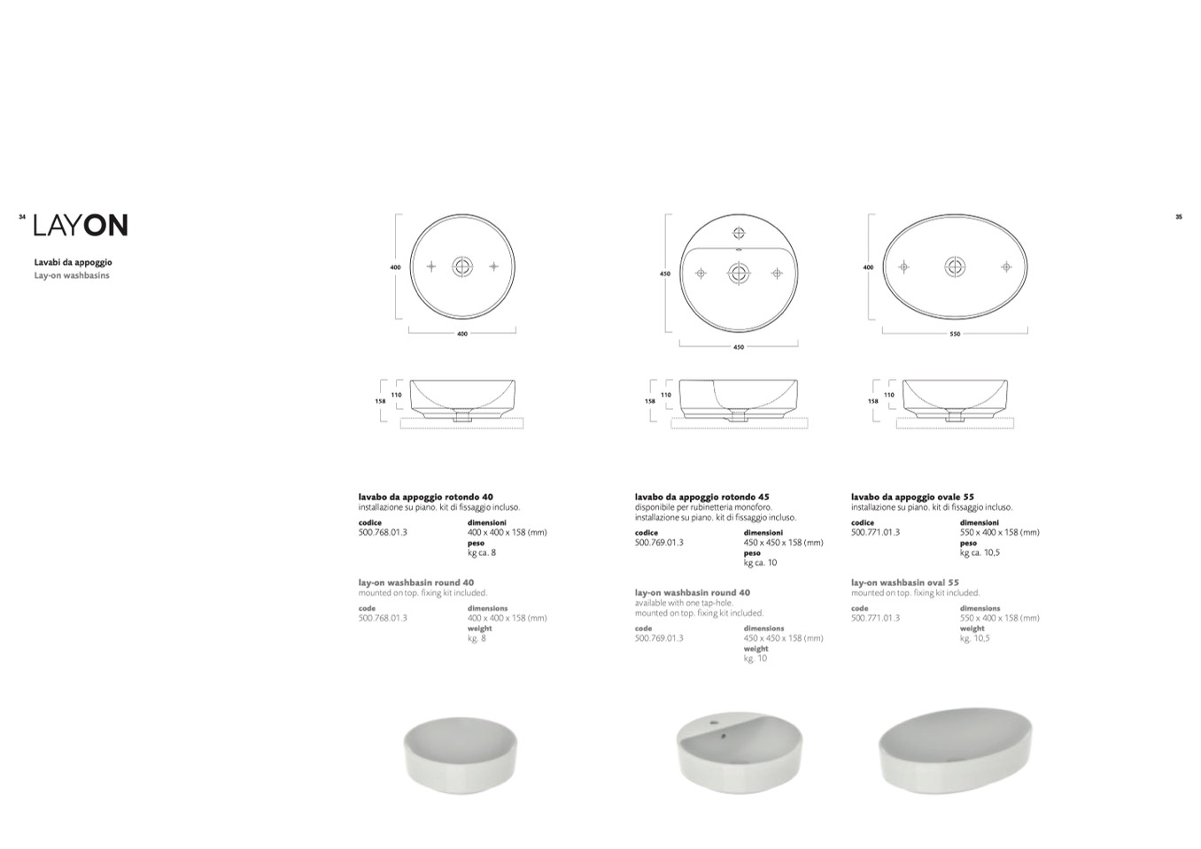Lay-on washbasins