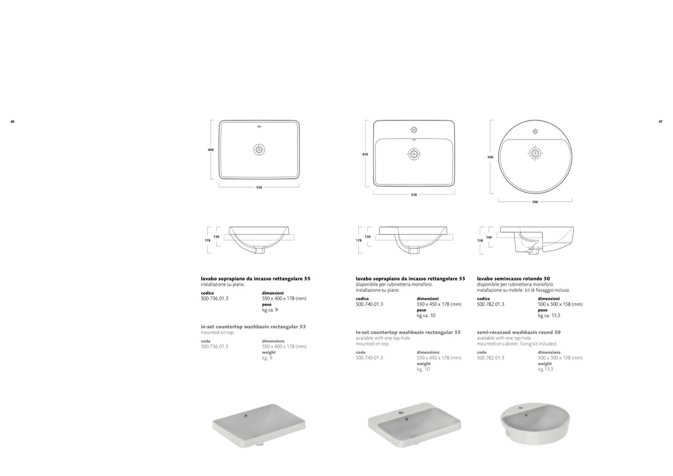 lavabo semincasso rotondo 50