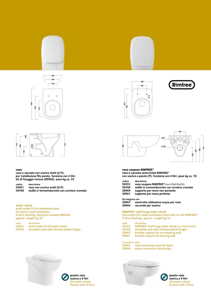 4 litres flushing. fixing kit included (89962).
