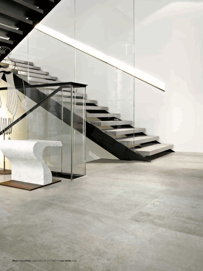 floor: raw-white matte 60x120 235/8”x471/4” raw-white step