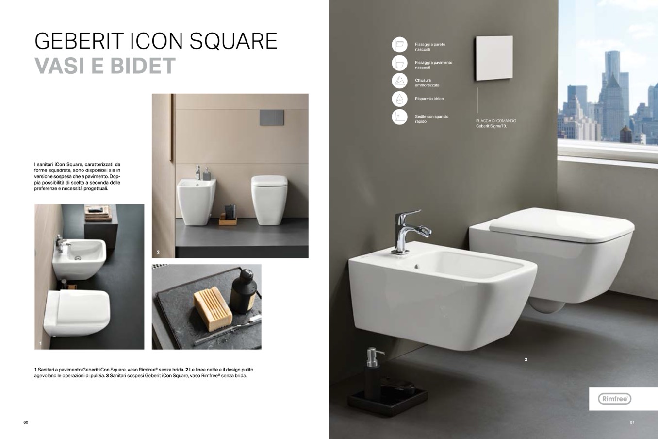 1 Sanitari a pavimento Geberit iCon Square, vaso Rimfree® senza brida. 2 Le linee nette e il design pulito
