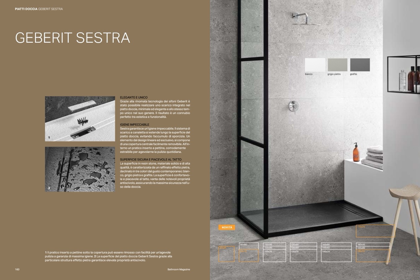 pulizia a garanzia di massima igiene. 2 La superficie del piatto doccia Geberit Sestra grazie alla