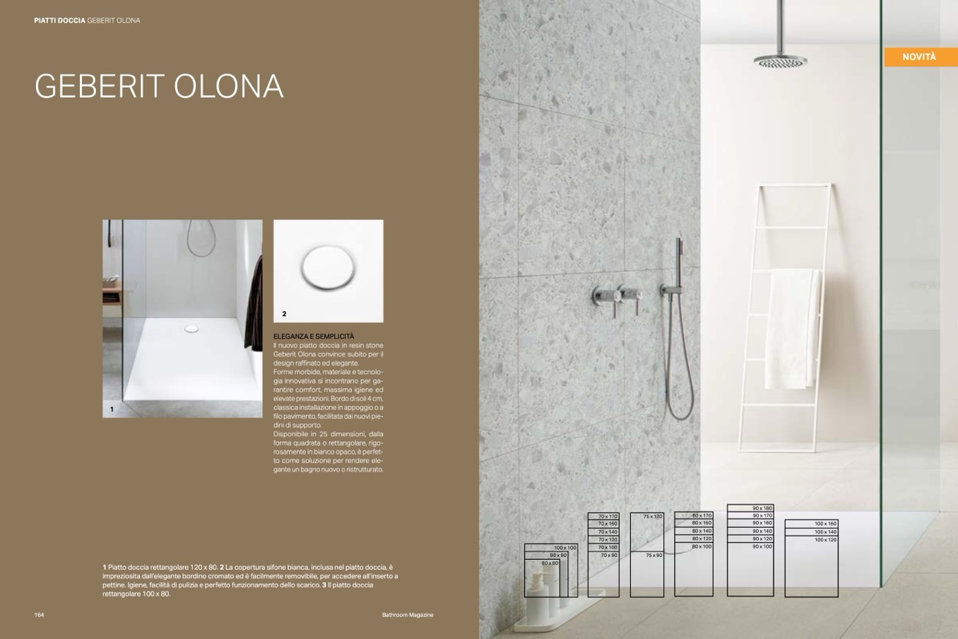 1 Piatto doccia rettangolare 120 x 80. 2 La copertura sifone bianca, inclusa nel piatto doccia, è