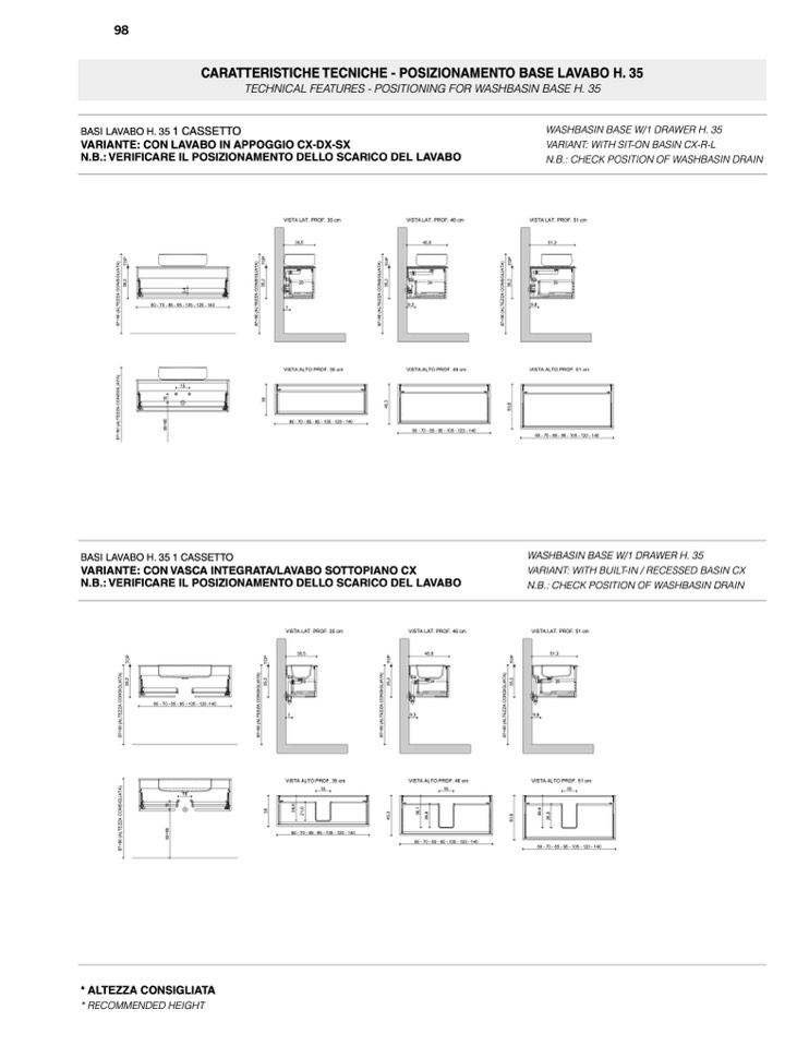 TECHNICAL FEATURES - POSITIONING FOR WASHBASIN BASE H. 35
