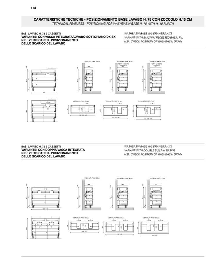 TECHNICAL FEATURES - POSITIONING FOR WASHBASIN BASE H. 75 WITH H. 15 PLINTH