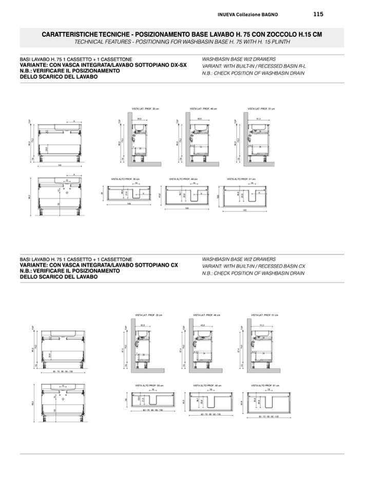 BASI LAVABO H. 75 1 CASSETTO + 1 CASSETTONE