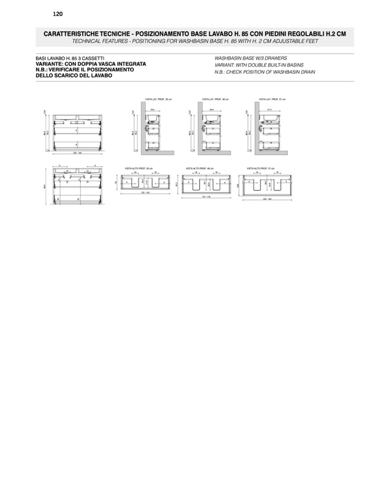 TECHNICAL FEATURES - POSITIONING FOR WASHBASIN BASE H. 85 WITH H. 2 CM ADJUSTABLE FEET