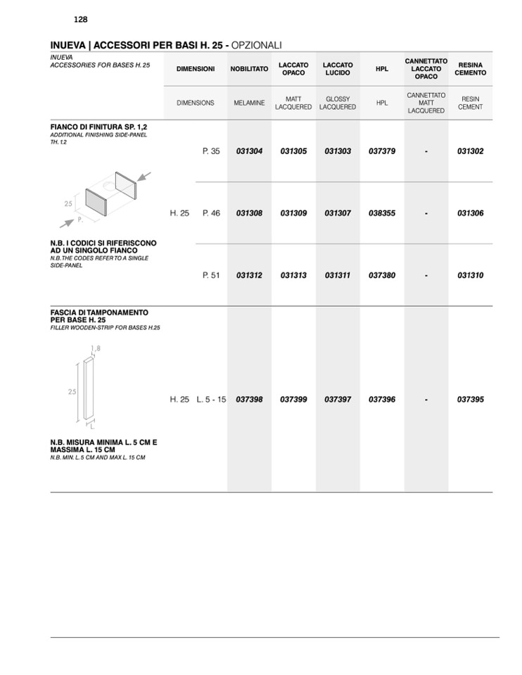 ACCESSORIES FOR BASES H. 25