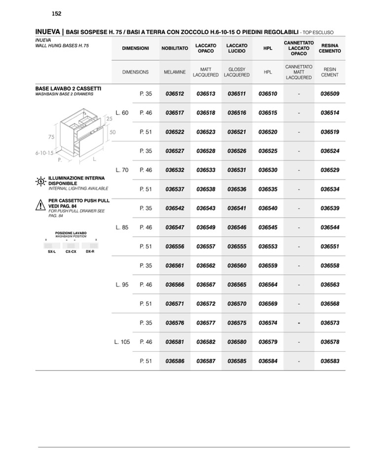 WALL HUNG BASES H. 75
