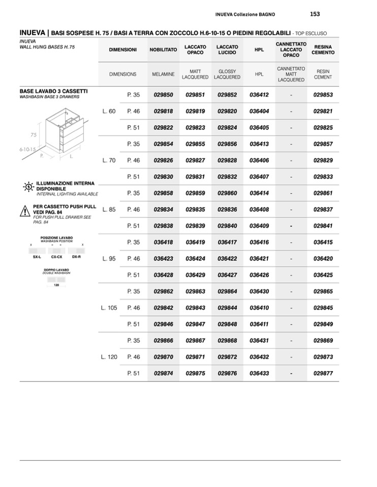 WALL HUNG BASES H. 75