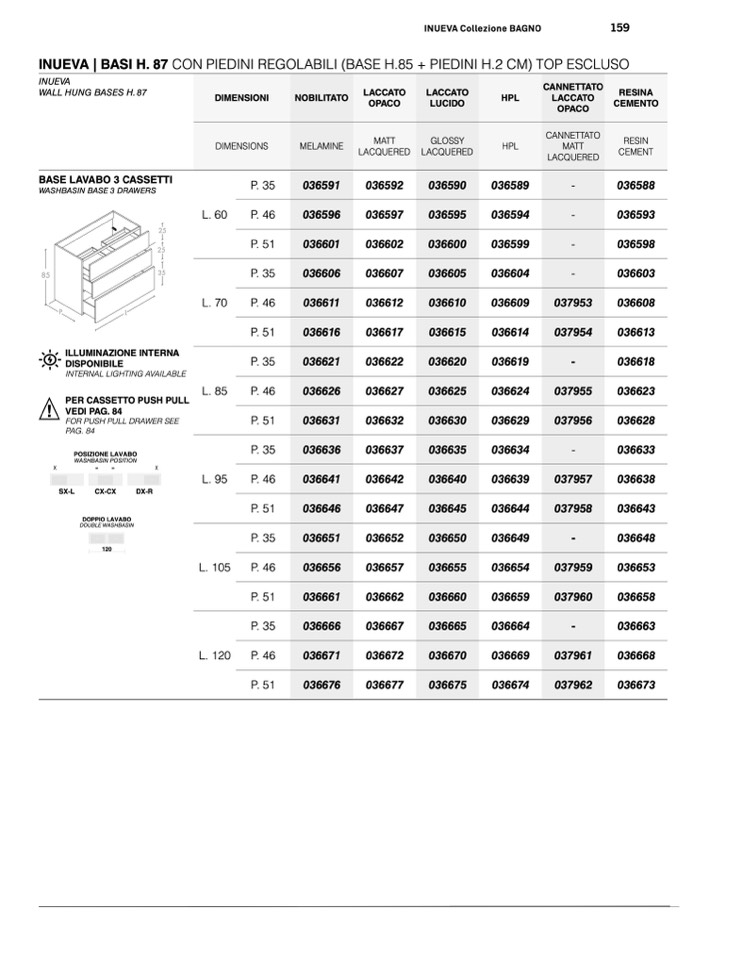 WALL HUNG BASES H. 87