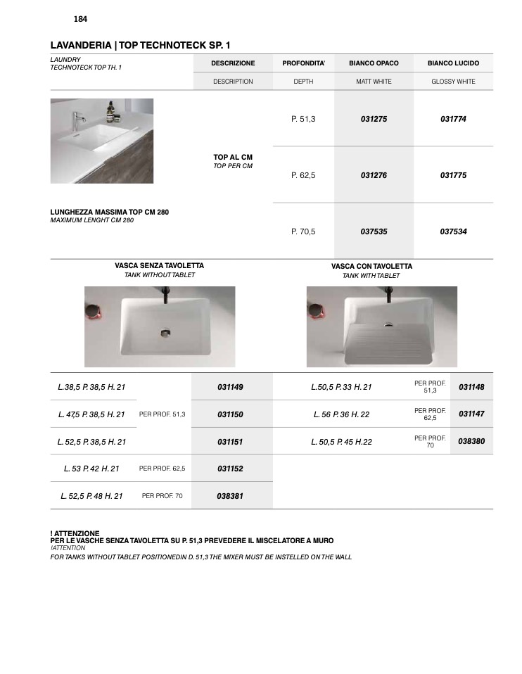 PER LE VASCHE SENZA TAVOLETTA SU P. 51,3 PREVEDERE IL MISCELATORE A MURO