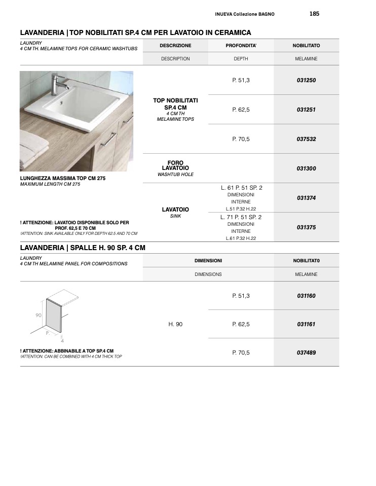 4 CM TH. MELAMINE TOPS FOR CERAMIC WASHTUBS