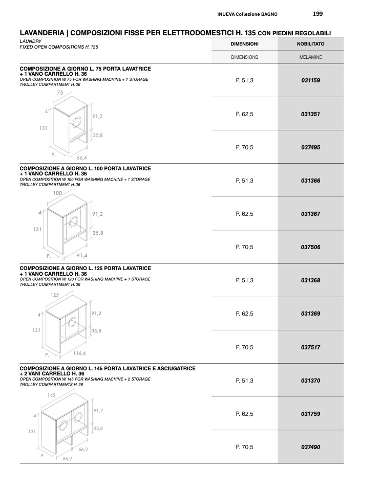 COMPOSIZIONE A GIORNO L. 145 PORTA LAVATRICE E ASCIUGATRICE