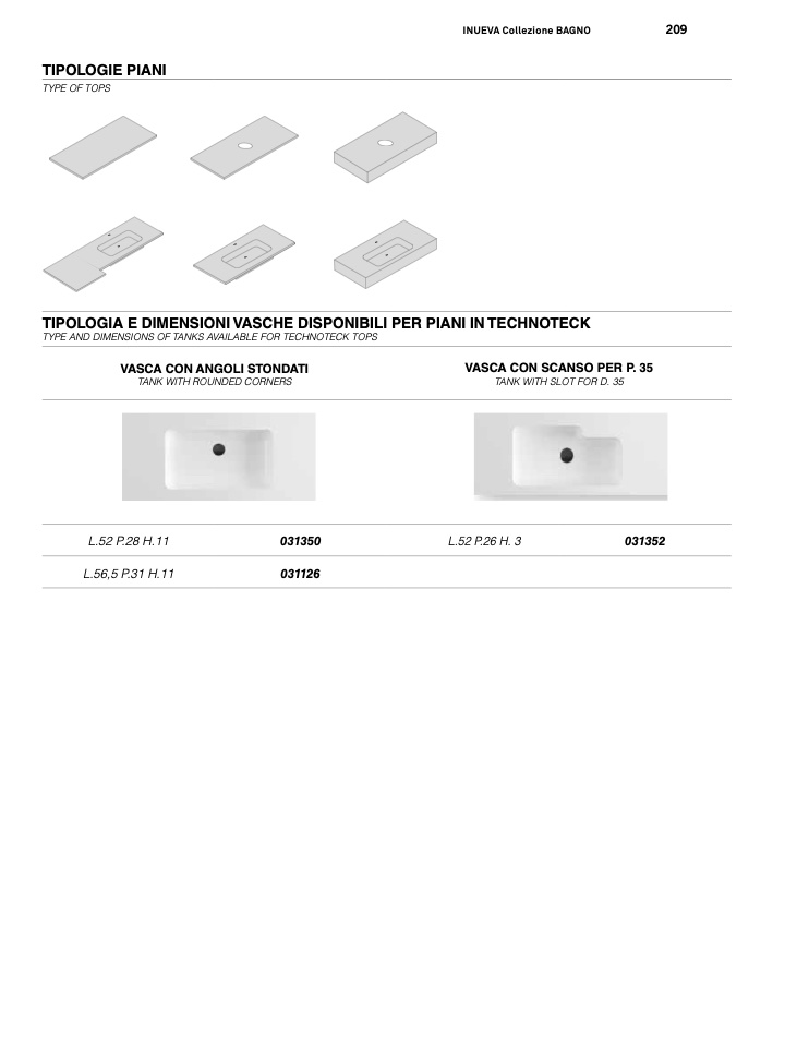 TYPE AND DIMENSIONS OF TANKS AVAILABLE FOR TECHNOTECK TOPS