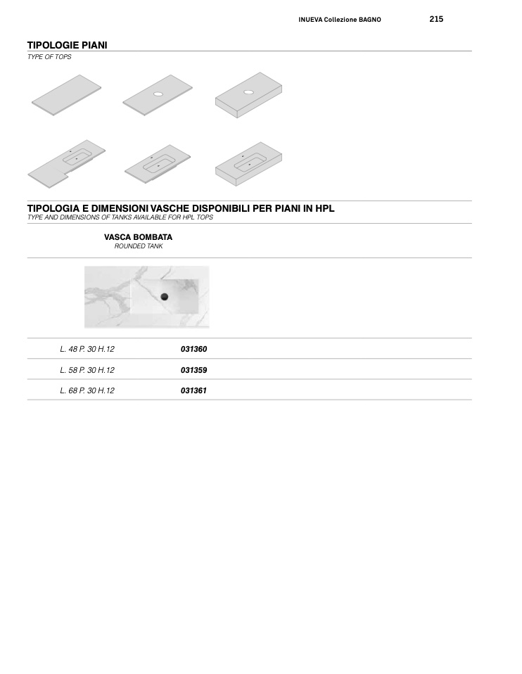 TYPE AND DIMENSIONS OF TANKS AVAILABLE FOR HPL TOPS