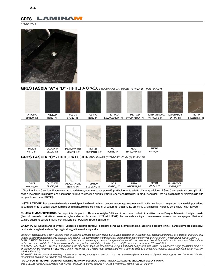 INSTALLATION: For the correct installation of Laminam stoneware tops, neutral transparent non-acetic silicones must be strictly used to avoid corrosion of the surface.
