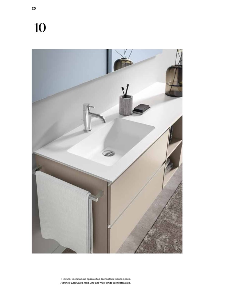 Finiture: Laccato Lino opaco e top Technoteck Bianco opaco.