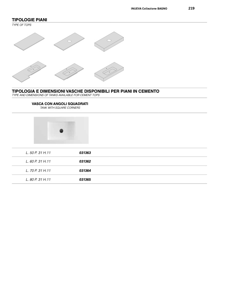 TYPE AND DIMENSIONS OF TANKS AVAILABLE FOR CEMENT TOPS