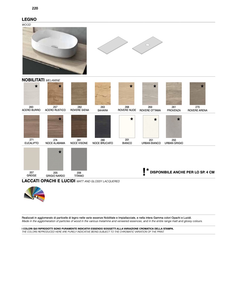 I COLORI QUI RIPRODOTTI SONO PURAMENTE INDICATIVI ESSENDO SOGGETTI ALLA VARIAZIONE CROMATICA DELLA STAMPA.