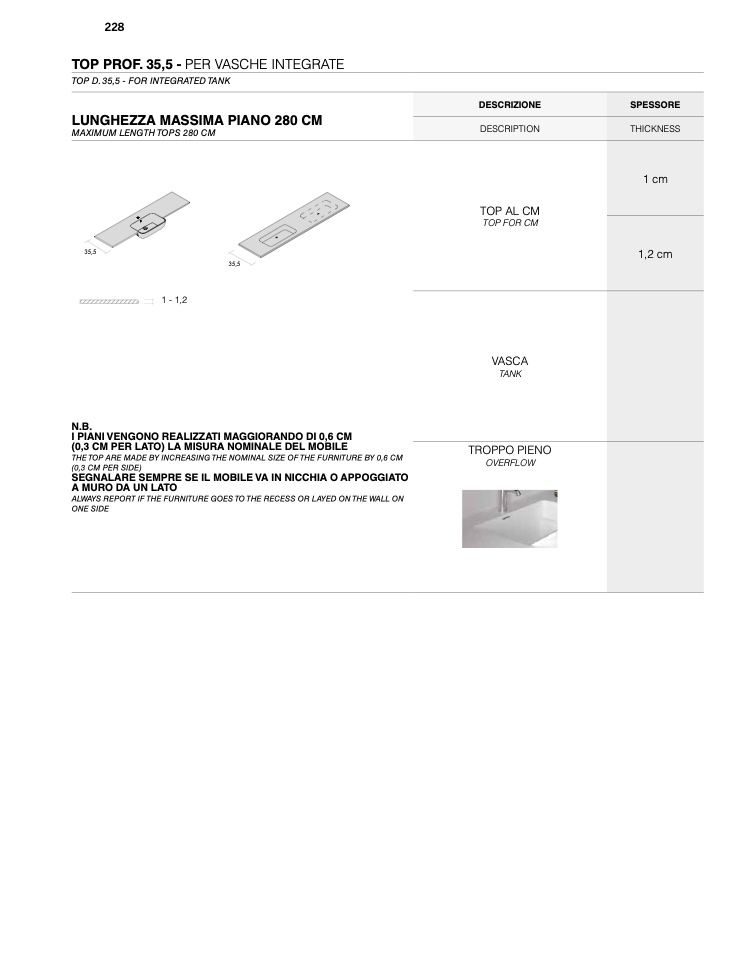 THE TOP ARE MADE BY INCREASING THE NOMINAL SIZE OF THE FURNITURE BY 0,6 CM