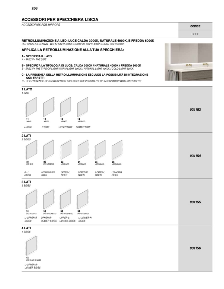 LED BACKLIGHTENING - WARM LIGHT 3000K / NATURAL LIGHT 4000K / COLD LIGHT 6000K