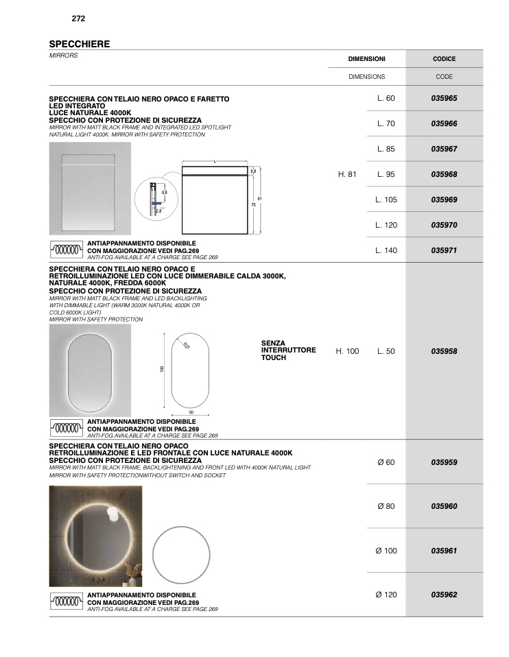 NATURAL LIGHT 4000K. MIRROR WITH SAFETY PROTECTION