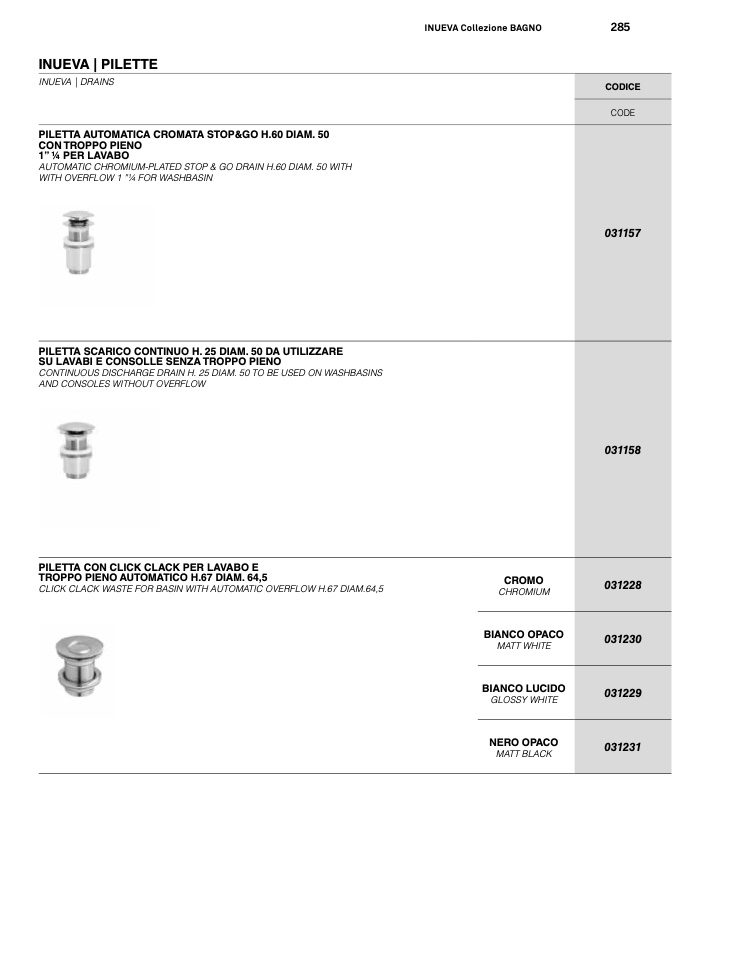 PILETTA CON CLICK CLACK PER LAVABO E