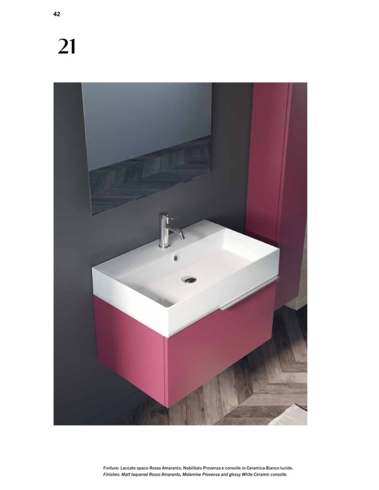 Finishes: Matt laquered Rosso Amaranto, Melamine Provenza and glossy White Ceramic consolle.