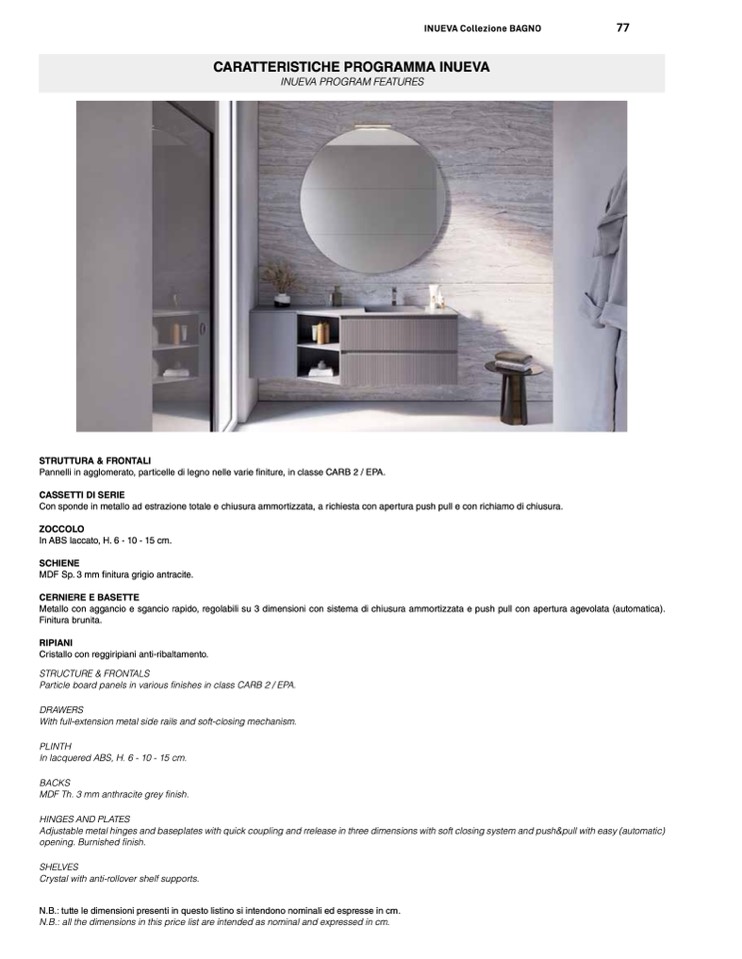 N.B.: tutte le dimensioni presenti in questo listino si intendono nominali ed espresse in cm.