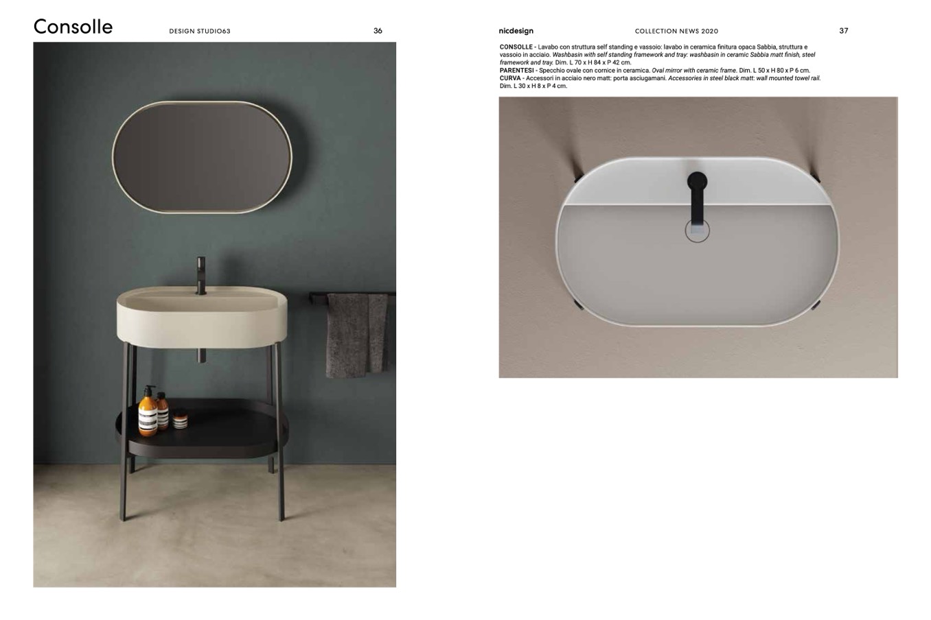 CONSOLLE - Lavabo con struttura self standing e vassoio: lavabo in ceramica finitura opaca Sabbia, struttura e