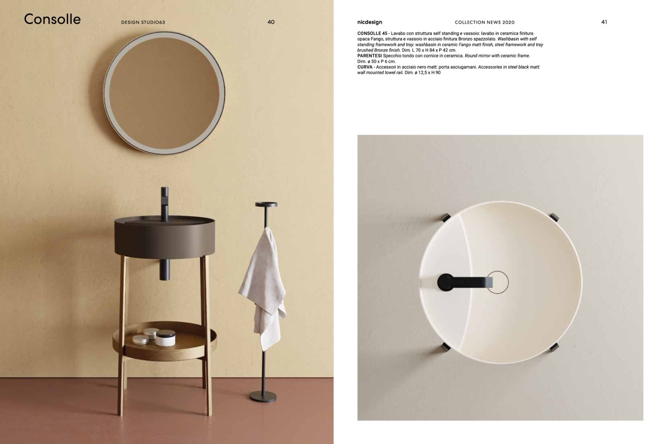 CONSOLLE 45 - Lavabo con struttura self standing e vassoio: lavabo in ceramica finitura